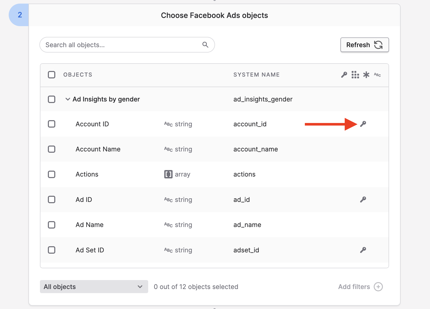 You can see the primary keys that Polytomic has automatically detected by noting those fields marked with a key icon in your bulk sync table configuration: