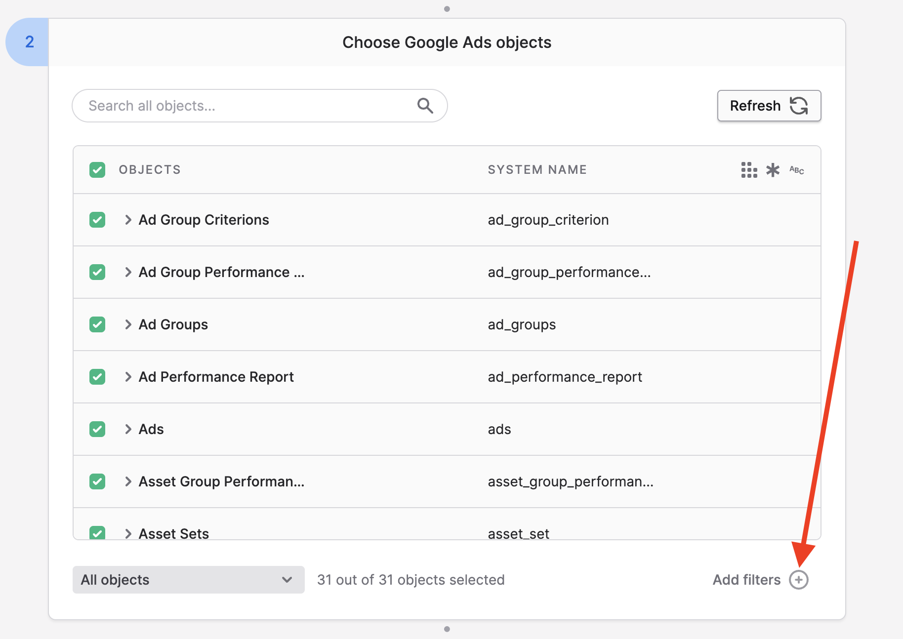 - Select any combination of parent and child Google Ads accounts to give Polytomic access to. All reports will be pulled from selected accounts only.