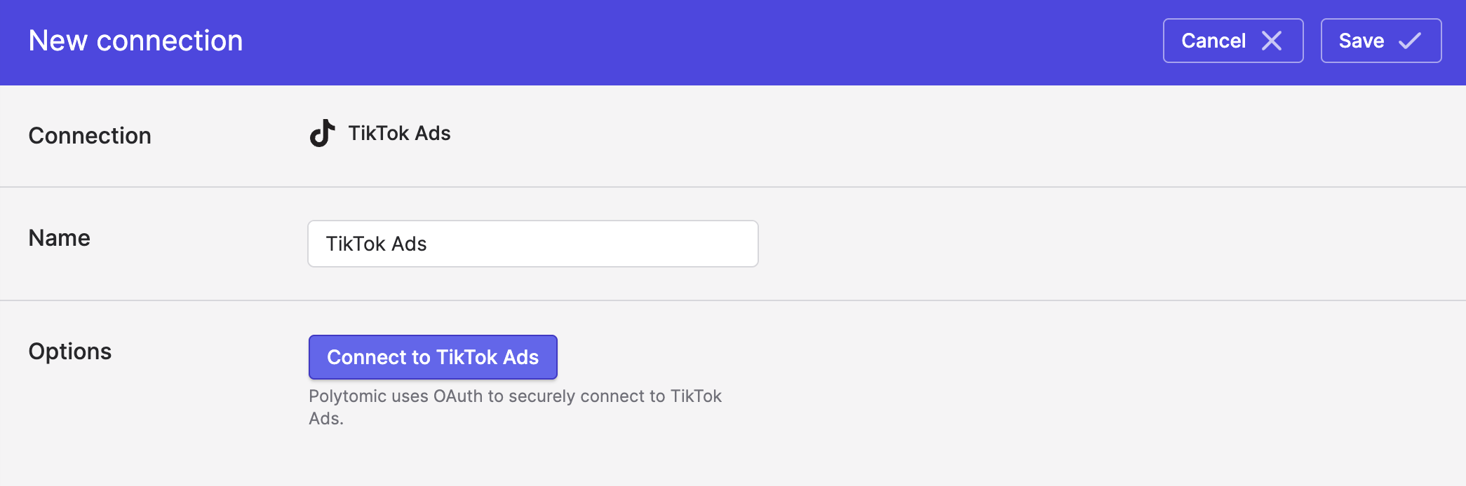 Polytomic connects to TikTok Ads using OAuth: