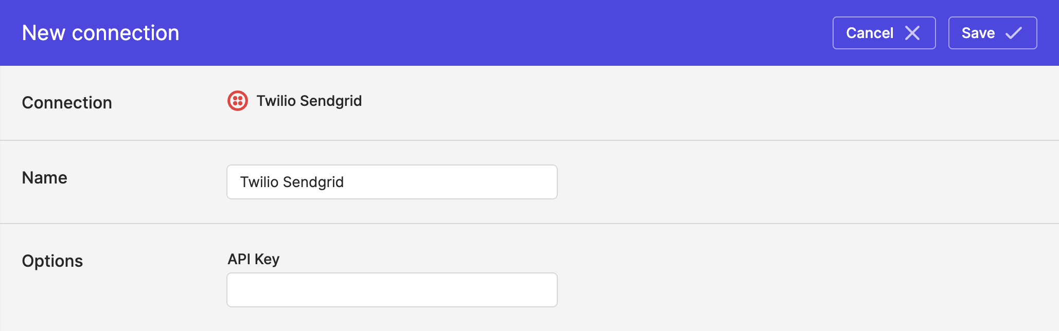 In Polytomic, go to Connections → Add Connection → Twilio SendGrid.